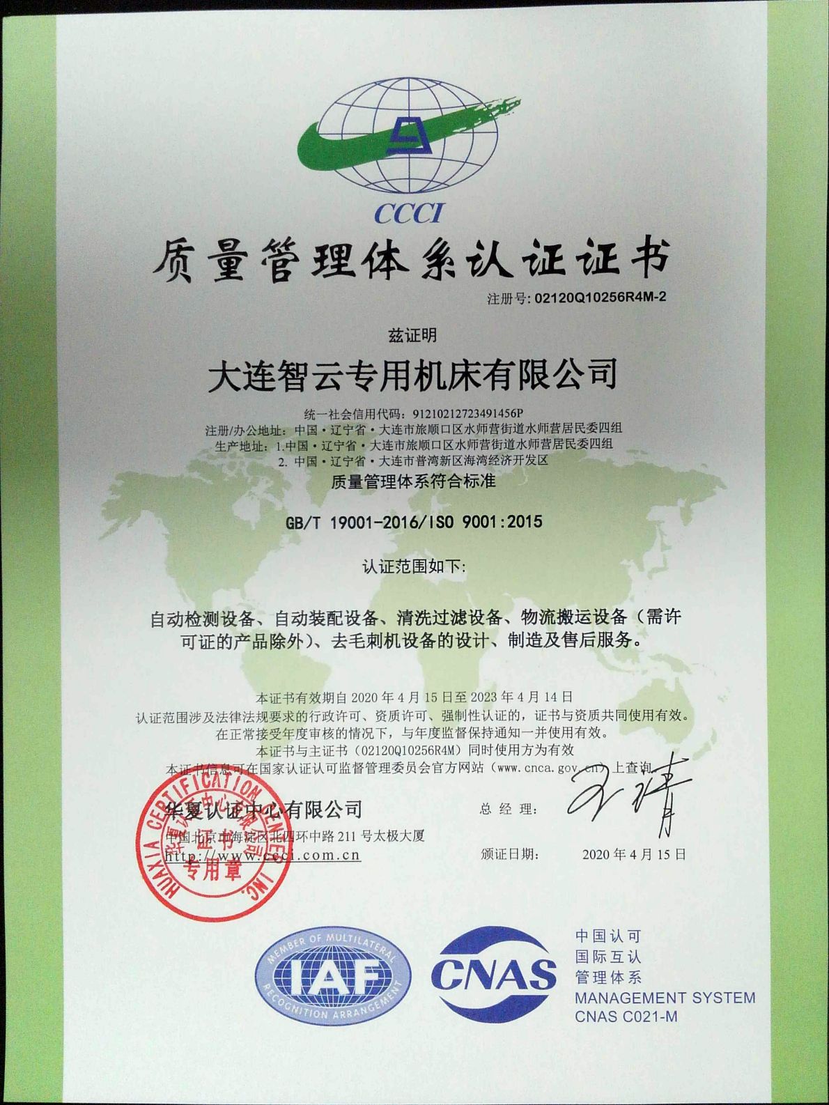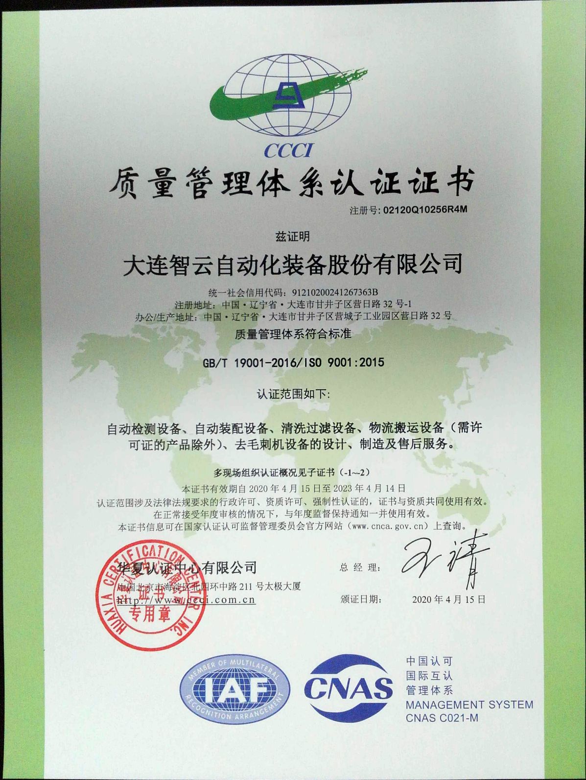 質量管理體系認證證書