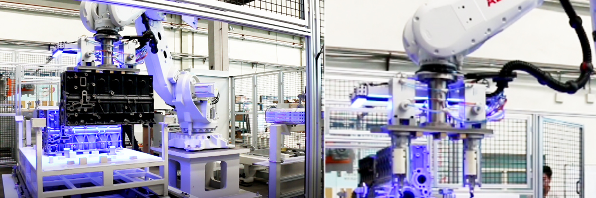機器人自動下料,配置進口快換對接裝置,如Zimmer或SCHUNK產品,適應各不同機型上下料,工件定位采用進口3D相機識別定位,安全、可靠。